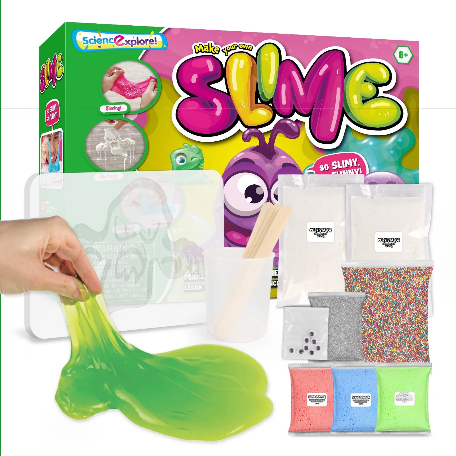 Surprise! This jumbo slime kit includes Glow in the Dark Powder for an extra layer of excitement.