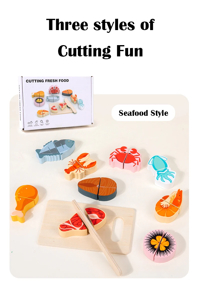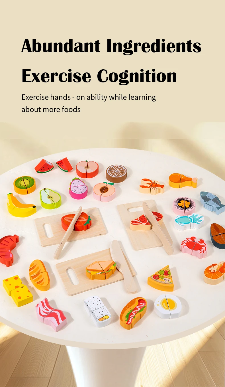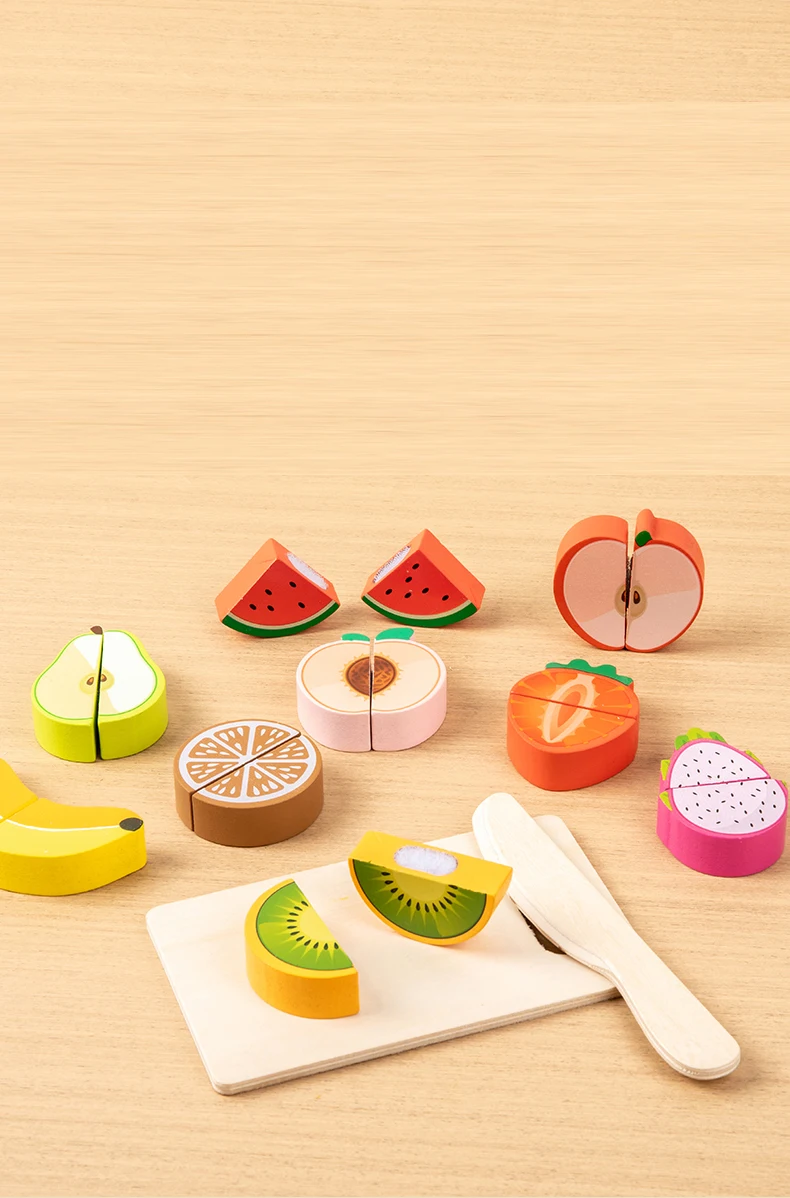 Let little chefs explore the world of pretend cooking with this fun and educational wooden cutting fruit set. Designed for toddlers and preschoolers, it encourages imaginative role play, fine motor skills, and early coordination—perfect for little hands and curious minds.