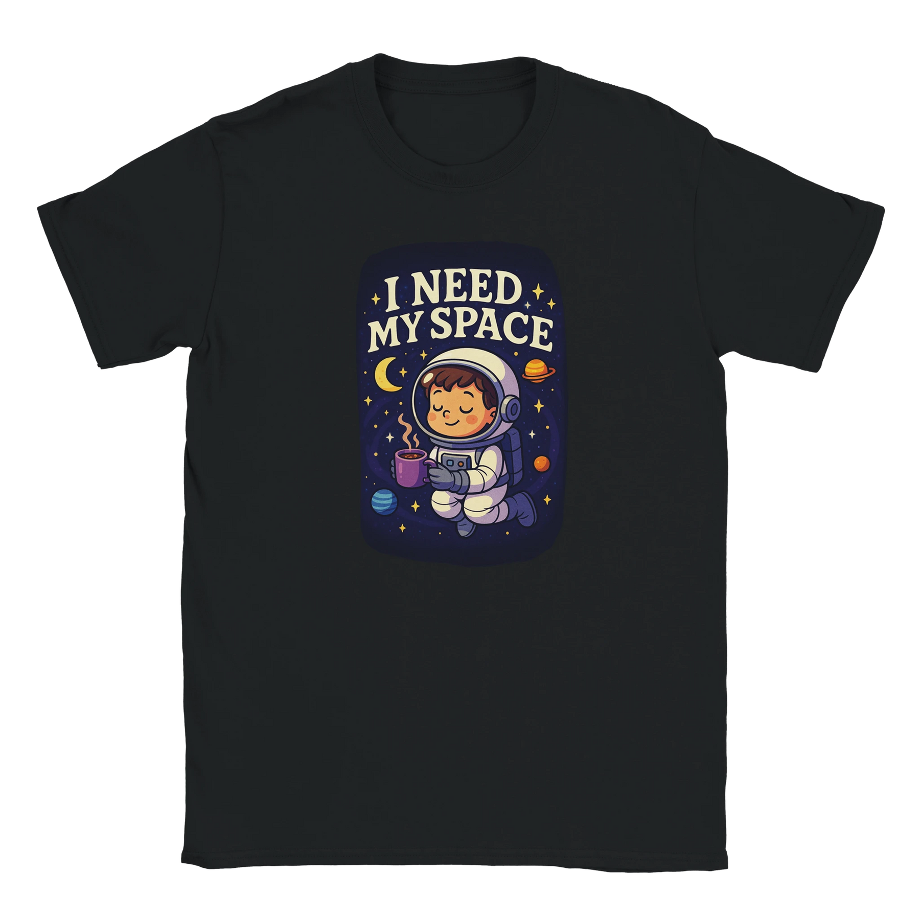 Launch your little one's imagination with our "I Need My Space" Astronaut Kids T-shirt! Featuring an adorable astronaut blissfully enjoying a cosmic cuppa, this tee captures the quiet magic of exploring the universe, one comfy moment at a time. It’s the perfect pick for young dreamers who love galaxies, coffee, and just a little bit of personal space.